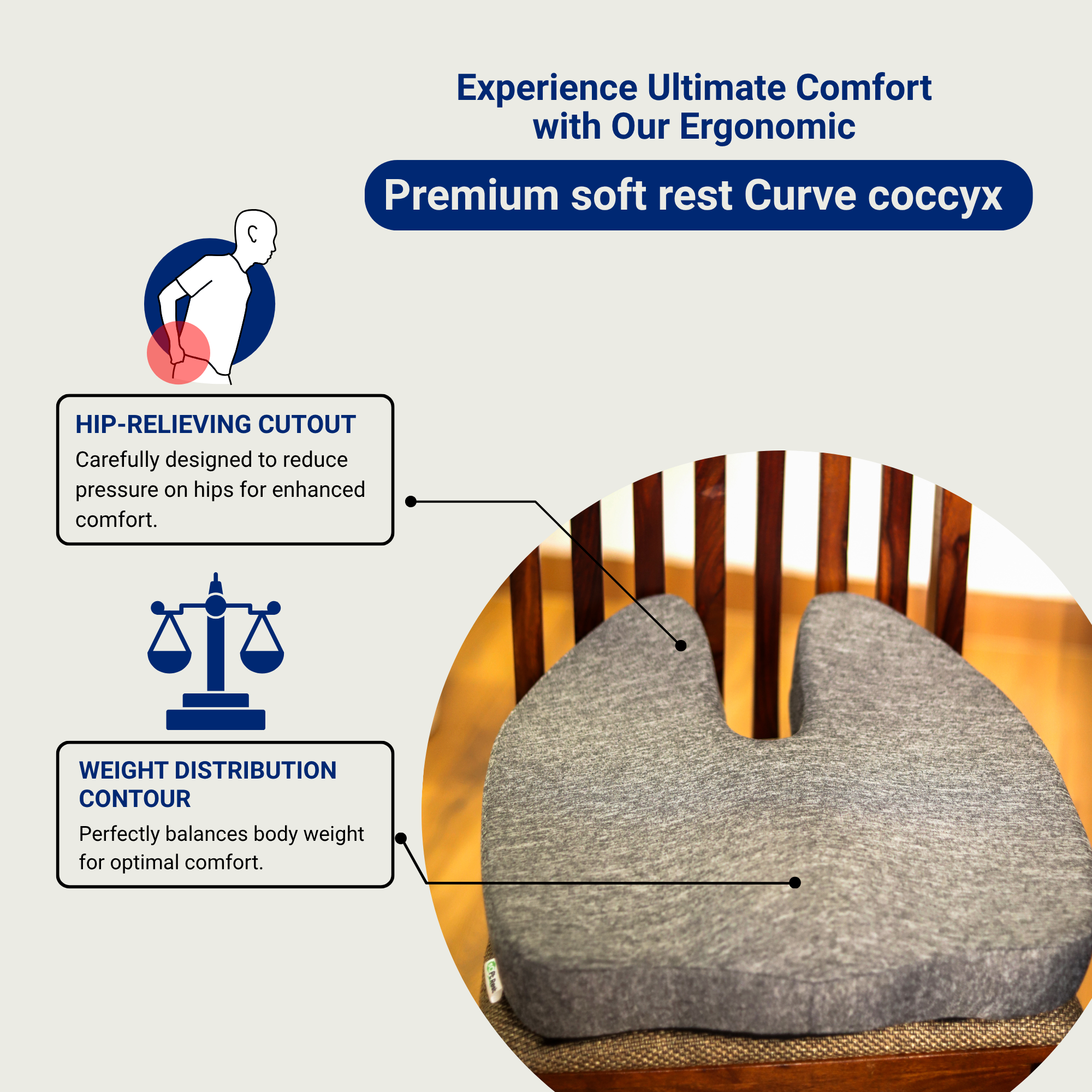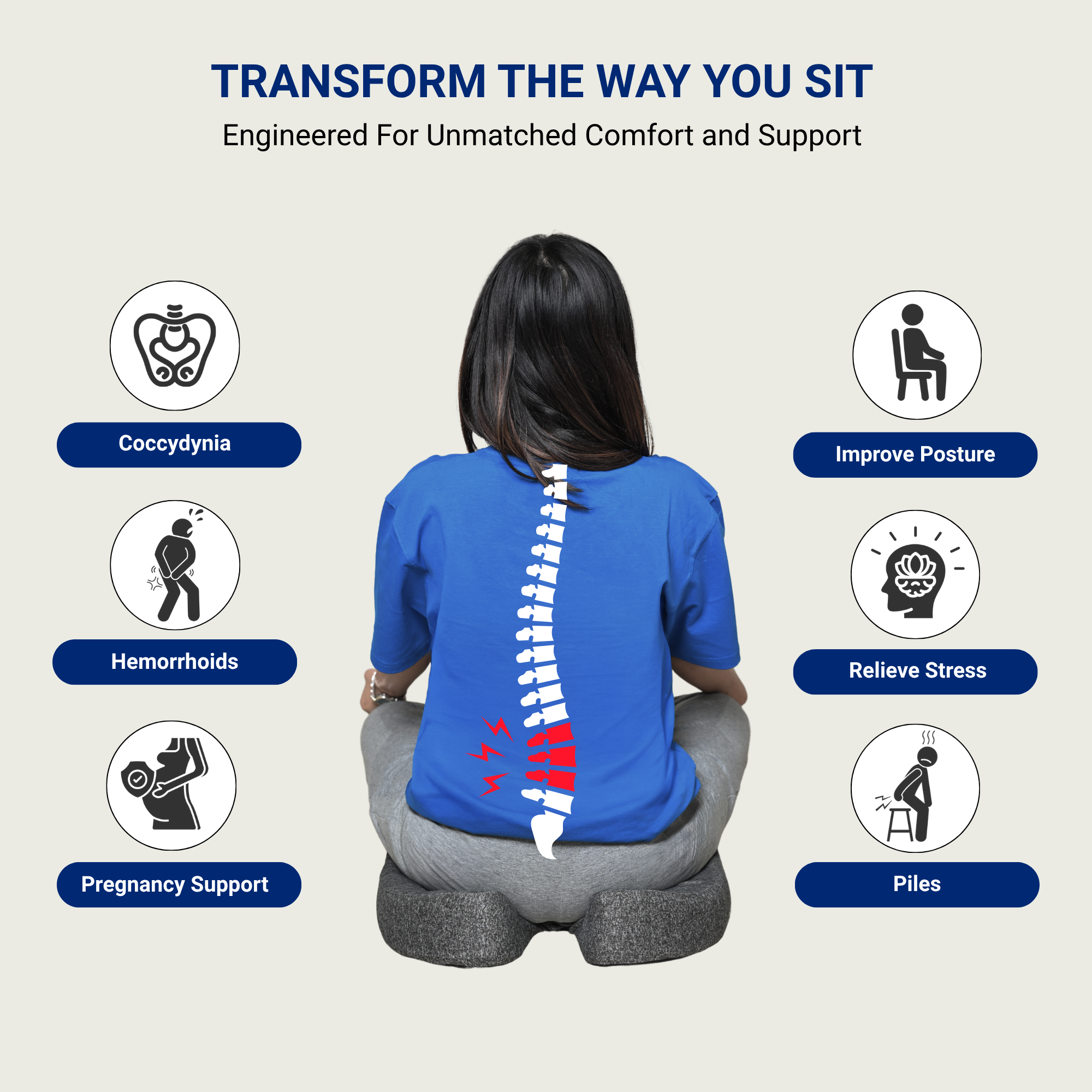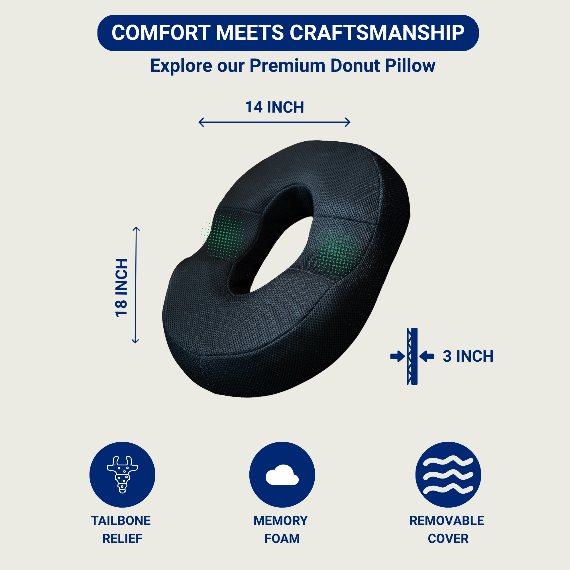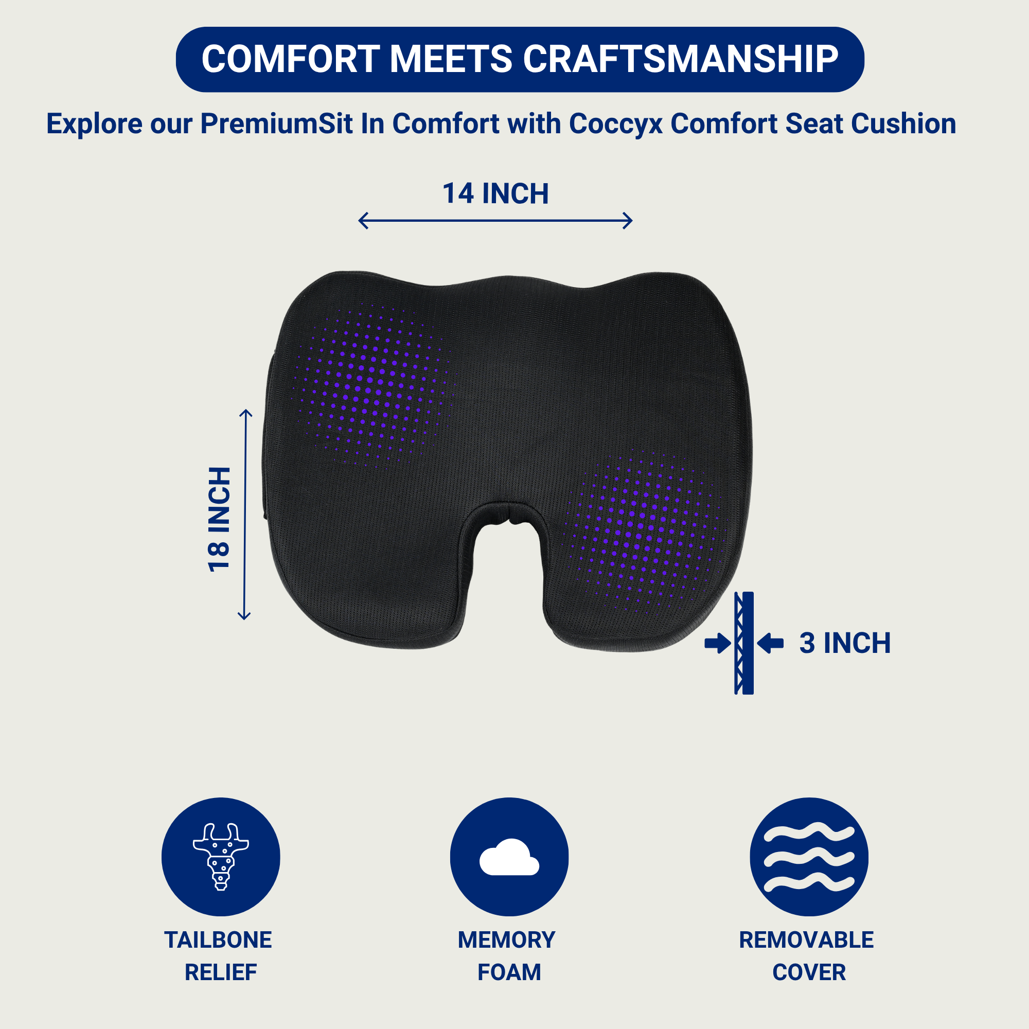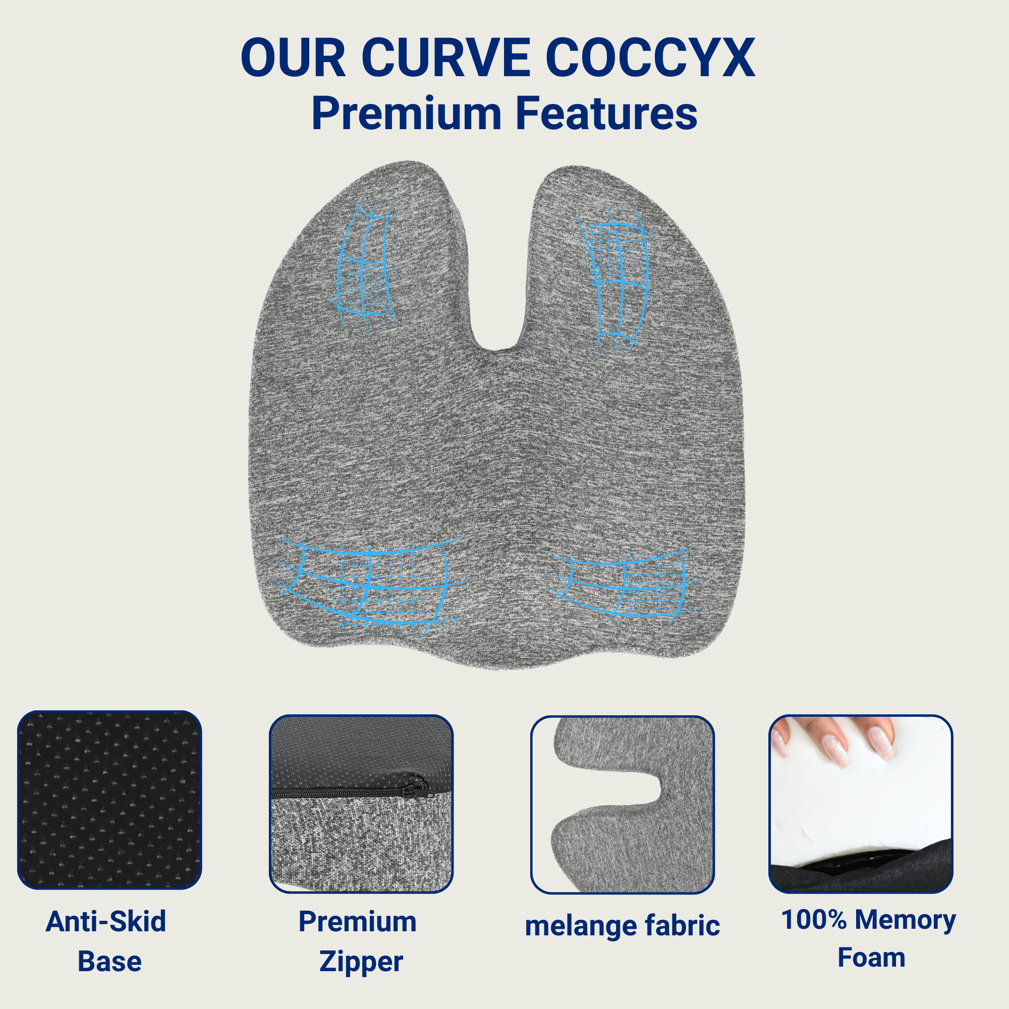 - 🛡️ ANTI-SLIP BASE – Non-slip bottom keeps the cushion stable on smooth surfaces & 🧼 REMOVABLE & WASHABLE COVER – Zippered cover is easy to remove and clean for hygiene and long-term use